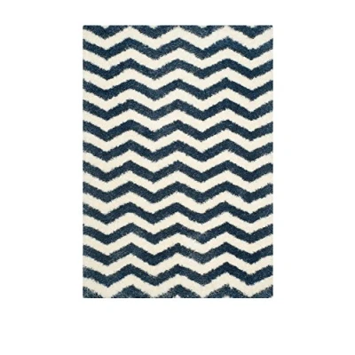 SAFAVIEH Shaggy Rug for Living Room, Dining Bedroom Montreal Shag Collection, High Pile, in Ivory and Blue, 122 X cm