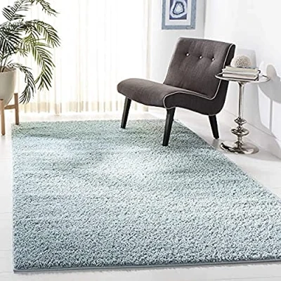 TRENDY STYLE: Shaggy rug design from the Safavieh New York Shag Collection woven in Turkey beautifully enhances any room of the home, from the living room, dining room, bedroom, home office, or entryway. Available in many colors and sizes. HIGH QUALITY & DURABLE DESIGN: Woven of Polypropylene this machine made area rug has a plush & comfortable 3 cm high pile and is soft underfoot. STAIN RESISTANT & FAMILY-FRIENDLY: Expertly woven from enhanced soft synthetic durable fibers that are stain resistant and non-shedding, the rug doesn't trap dirt or debris making it pet-friendly and easy to clean. Perfect for high traffic areas. EASY CARE & MAINTENANCE: Vacuum regularly and gently blot and clean stains immediately with a mild detergent or carpet cleaner, then rinse thoroughly and dry. Professional cleaning recommended for tough stains and dirt. THE BRAND: Safavieh has been a trusted brand and global leader in home & living for over 100 Years. Experts in making quality, durable, trendy designs, the brand mixes materials, colors and styles to create a collection of rugs, furniture and lights