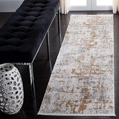 Safavieh Shivan Collection Contemporary Rug for Living Room Dining Bedroom Short Pile Grey and Gold 26 x 96 Inch