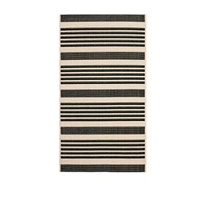 SAFAVIEH Striped Rug for Indoor & Outdoor Courtyard Collection, Short Pile, in Black and Bone color, 79 X 152 cm