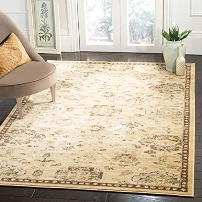 SAFAVIEH Traditional Rug for Living Room, Dining Bedroom Florenteen Collection, Short Pile, in Ivory and Brown, 155 X 231 cm