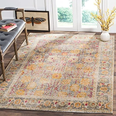 SAFAVIEH Traditional Rug for Living Room, Dining Bedroom Granada Collection, Short Pile, in Light Grey and Multi, 155 X 229 cm