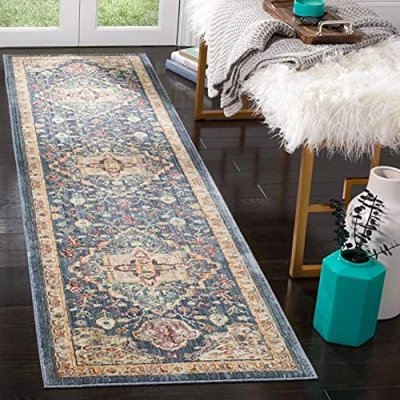 SAFAVIEH Traditional Rug for Living Room, Dining Bedroom Illusion Collection, Short Pile, in Blue and Purple, 69 X 244 cm
