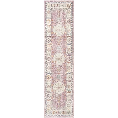 SAFAVIEH Traditional Rug for Living Room, Dining Bedroom Illusion Collection, Short Pile, in Rose and Cream, 69 X 244 cm