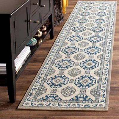 SAFAVIEH Traditional Rug for Living Room, Dining Bedroom Patina Collection, Short Pile, in Blue and Ivory, 66 X 244 cm