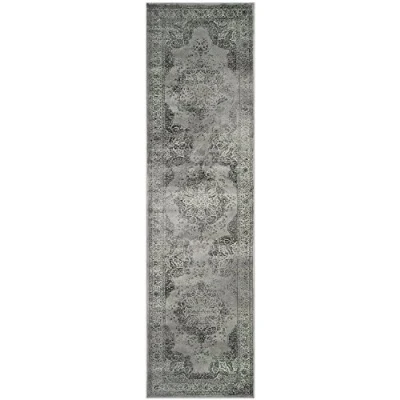 TRENDY STYLE: Traditional rug design from the Safavieh Vintage Collection woven in Belgium beautifully enhances any room of the home, from the living room, dining room, bedroom, home office, or entryway. Available in many colors and sizes. HIGH QUALITY & DURABLE DESIGN: Woven of 72% Viscose / 15% Cotton / 13% Polyester this machine made area rug has a plush & comfortable 0.4 cm low pile and is soft underfoot. STAIN RESISTANT & FAMILY-FRIENDLY: Expertly woven from enhanced soft synthetic durable fibers that are stain resistant and non-shedding, the rug doesn't trap dirt or debris making it pet-friendly and easy to clean. Perfect for high traffic areas. EASY CARE & MAINTENANCE: Vacuum regularly and gently blot and clean stains immediately with a mild detergent or carpet cleaner, then rinse thoroughly and dry. Professional cleaning recommended for tough stains and dirt. THE BRAND: Safavieh has been a trusted brand and global leader in home & living for over 100 Years. Experts in making quality, durable, trendy designs, the brand mixes materials, colors and styles to create a collection of rugs, furniture and lights Construction Type: Power Loomed; Materials 72% Viscose 15% Cotton 13% Polyester Size: 66 X 243 cm; Colour: Grey / Multi Vacuum regularly to prevent dust and crumbs from settling into the roots of the fibres. Avoid direct and continuous exposure to sunlight. Use rug protectors under the legs of heavy furniture to avoid flattening piles. Do not pull loose ends; clip them with scissors to remove. Turn carpet occasionally to equalize wear. Remove spills immediately. Professional cleaning is recommended.