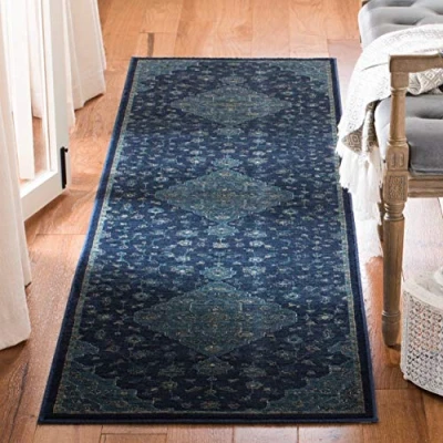 TRENDY STYLE: Traditional rug design from the Safavieh Vintage Collection woven in Turkey beautifully enhances any room of the home, from the living room, dining room, bedroom, home office, or entryway. Available in many colors and sizes. HIGH QUALITY & DURABLE DESIGN: Woven of Viscose this machine made area rug has a plush & comfortable 0.8 cm low pile and is soft underfoot. STAIN RESISTANT & FAMILY-FRIENDLY: Expertly woven from enhanced soft synthetic durable fibers that are stain resistant and non-shedding, the rug doesn't trap dirt or debris making it pet-friendly and easy to clean. Perfect for high traffic areas. EASY CARE & MAINTENANCE: Vacuum regularly and gently blot and clean stains immediately with a mild detergent or carpet cleaner, then rinse thoroughly and dry. Professional cleaning recommended for tough stains and dirt. THE BRAND: Safavieh has been a trusted brand and global leader in home & living for over 100 Years. Experts in making quality, durable, trendy designs, the brand mixes materials, colors and styles to create a collection of rugs, furniture and lights