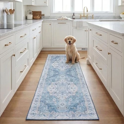 Safavieh Traditional Rug Optimal for High Traffic Areas, Machine Washable and Slip Resistant, Tucson Collection, Short Pile, in Light Blue Blue, 67 X 183 cm