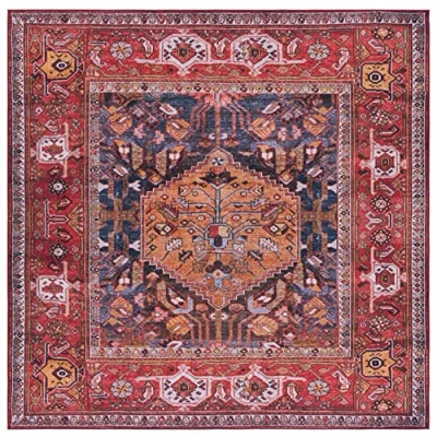 Safavieh Traditional Rug Optimal for High Traffic Areas, Machine Washable and Slip Resistant, Tucson Collection, Short Pile, in Rust Marine Blue, 122 X cm