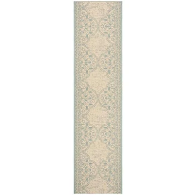 SAFAVIEH Transitional Rug for Indoor & Outdoor Beachhouse Collection, Short Pile, in Aqua and Cream color, 61 X 244 cm