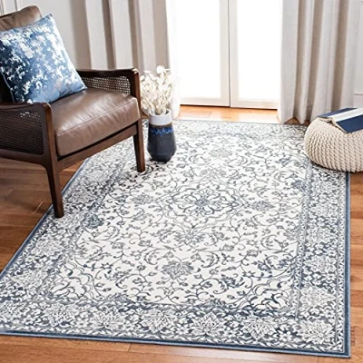 SAFAVIEH Transitional Rug for Living Room, Dining Bedroom Noble Collection, Short Pile, in Dark Blue and Ivory, 155 X 229 cm