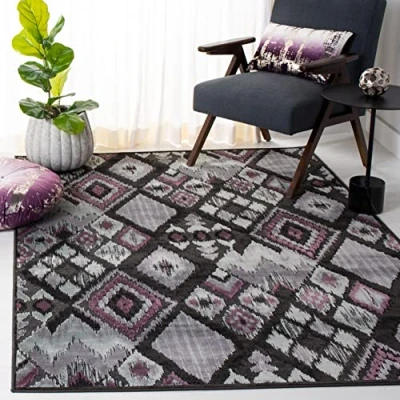 TRENDY STYLE: Transitional rug design from the Safavieh Paradise Collection woven in Belgium beautifully enhances any room of the home, from the living room, dining room, bedroom, home office, or entryway. Available in many colors and sizes. HIGH QUALITY & DURABLE DESIGN: Woven of 100% Viscose Pile this machine made area rug has a plush & comfortable 0.4 cm low pile and is soft underfoot. STAIN RESISTANT & FAMILY-FRIENDLY: Expertly woven from enhanced soft synthetic durable fibers that are stain resistant and non-shedding, the rug doesn't trap dirt or debris making it pet-friendly and easy to clean. Perfect for high traffic areas. EASY CARE & MAINTENANCE: Vacuum regularly and gently blot and clean stains immediately with a mild detergent or carpet cleaner, then rinse thoroughly and dry. Professional cleaning recommended for tough stains and dirt. THE BRAND: Safavieh has been a trusted brand and global leader in home & living for over 100 Years. Experts in making quality, durable, trendy designs, the brand mixes materials, colors and styles to create a collection of rugs, furniture and lights Construction Type: Power Loomed; Materials 100% Viscose Size: 160 X 228 cm; Colour: Charcoal / Multi Vacuum regularly to prevent dust and crumbs from settling into the roots of the fibres. Avoid direct and continuous exposure to sunlight. Use rug protectors under the legs of heavy furniture to avoid flattening piles. Do not pull loose ends; clip them with scissors to remove. Turn carpet occasionally to equalize wear. Remove spills immediately. Professional cleaning is recommended.