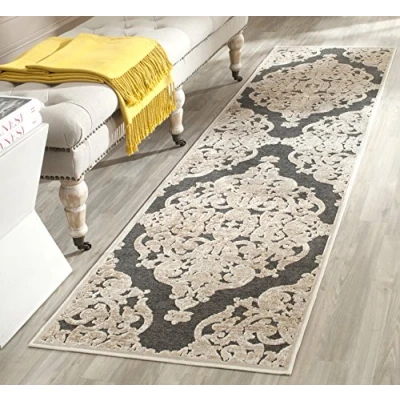 TRENDY STYLE: Transitional rug design from the Safavieh Paradise Collection woven in Belgium beautifully enhances any room of the home, from the living room, dining room, bedroom, home office, or entryway. Available in many colors and sizes. HIGH QUALITY & DURABLE DESIGN: Woven of 100% Viscose Pile this machine made area rug has a plush & comfortable 0.4 cm low pile and is soft underfoot. STAIN RESISTANT & FAMILY-FRIENDLY: Expertly woven from enhanced soft synthetic durable fibers that are stain resistant and non-shedding, the rug doesn't trap dirt or debris making it pet-friendly and easy to clean. Perfect for high traffic areas. EASY CARE & MAINTENANCE: Vacuum regularly and gently blot and clean stains immediately with a mild detergent or carpet cleaner, then rinse thoroughly and dry. Professional cleaning recommended for tough stains and dirt. THE BRAND: Safavieh has been a trusted brand and global leader in home & living for over 100 Years. Experts in making quality, durable, trendy designs, the brand mixes materials, colors and styles to create a collection of rugs, furniture and lights Construction Type: Power Loomed; Materials 100% Viscose Size: 66 X 243 cm; Colour: Stone / Anthracite Vacuum regularly to prevent dust and crumbs from settling into the roots of the fibres. Avoid direct and continuous exposure to sunlight. Use rug protectors under the legs of heavy furniture to avoid flattening piles. Do not pull loose ends; clip them with scissors to remove. Turn carpet occasionally to equalize wear. Remove spills immediately. Professional cleaning is recommended.