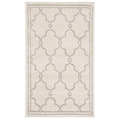 TRENDY STYLE: Trellis rug design from the Safavieh Amherst Collection woven in Turkey enhances any outdoor space. This durable design can also be used for kitchen, playroom, nursery or any high traffic area. Available in many colors and sizes. HIGH QUALITY & DURABLE DESIGN: Woven of 67% Polypropylene / 18% Fibrillated Polypropylene / 8% Latex / 7% Poly-Cotton this machine made area rug has a plush & comfortable 0.95 cm low pile and is soft underfoot. STAIN RESISTANT & FAMILY-FRIENDLY: Expertly woven from enhanced soft synthetic durable fibers that are stain resistant and non-shedding, the rug doesn't trap dirt or debris making it pet-friendly and easy to clean. Perfect for high traffic areas. EASY CARE & MAINTENANCE: Outdoor rugs are made from fibers that are water and stain resistant and deter mildew to withstand natural weather elements. Rinse with a garden hose to remove excessive grime. Dry over a railing in the sun on both sides. THE BRAND: Safavieh has been a trusted brand and global leader in home & living for over 100 Years. Experts in making quality, durable, trendy designs, the brand mixes materials, colors and styles to create a collection of rugs, furniture and lights Construction Type: Power Loomed; Material: 67% Polypropylene 18% Fibrillated Polypropylene 8% Latex 7% Poly-Cotton(Warp) Size: 76 X 121 cm; Colour: Ivory / Light Grey Vacuum regularly to prevent dust and crumbs from settling into the roots of the fibres. Avoid direct and continuous exposure to sunlight. Use rug protectors under the legs of heavy furniture to avoid flattening piles. Do not pull loose ends; clip them with scissors to remove. Turn carpet occasionally to equalize wear. Remove spills immediately. Professional cleaning is recommended.