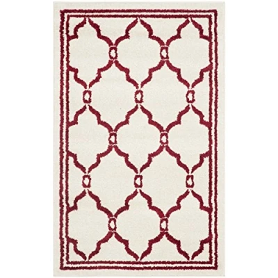 SAFAVIEH Trellis Rug for Indoor & Outdoor Amherst Collection, Short Pile, in Ivory and Red color, 76 X 122 cm