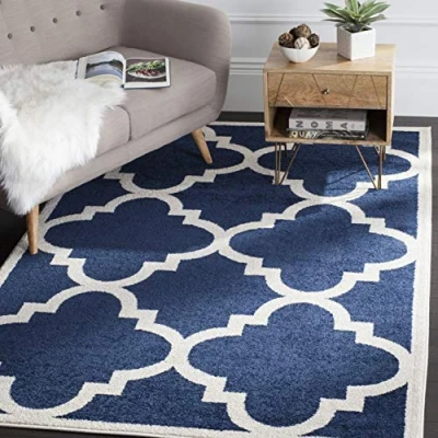 TRENDY STYLE: Trellis rug design from the Safavieh Amherst Collection woven in Turkey enhances any outdoor space. This durable design can also be used for kitchen, playroom, nursery or any high traffic area. Available in many colors and sizes. HIGH QUALITY & DURABLE DESIGN: Woven of 67% Polypropylene / 18% Fibrillated Polypropylene / 8% Latex / 7% Poly-Cotton this machine made area rug has a plush & comfortable 0.95 cm low pile and is soft underfoot. STAIN RESISTANT & FAMILY-FRIENDLY: Expertly woven from enhanced soft synthetic durable fibers that are stain resistant and non-shedding, the rug doesn't trap dirt or debris making it pet-friendly and easy to clean. Perfect for high traffic areas. EASY CARE & MAINTENANCE: Outdoor rugs are made from fibers that are water and stain resistant and deter mildew to withstand natural weather elements. Rinse with a garden hose to remove excessive grime. Dry over a railing in the sun on both sides. THE BRAND: Safavieh has been a trusted brand and global leader in home & living for over 100 Years. Experts in making quality, durable, trendy designs, the brand mixes materials, colors and styles to create a collection of rugs, furniture and lights