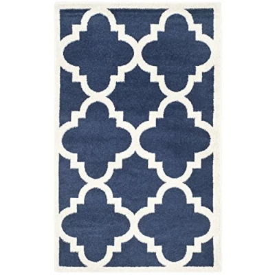 SAFAVIEH Trellis Rug for Indoor & Outdoor Amherst Collection, Short Pile, in Navy and Beige color, 91 X 152 cm