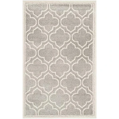 TRENDY STYLE: Geometric rug design from the Safavieh Amherst Collection woven in Turkey enhances any outdoor space. This durable design can also be used for kitchen, playroom, nursery or any high traffic area. Available in many colors and sizes. HIGH QUALITY & DURABLE DESIGN: Woven of 67% Polypropylene / 18% Fibrillated Polypropylene / 8% Latex / 7% Poly-Cotton this machine made area rug has a plush & comfortable 0.95 cm low pile and is soft underfoot. STAIN RESISTANT & FAMILY-FRIENDLY: Expertly woven from enhanced soft synthetic durable fibers that are stain resistant and non-shedding, the rug doesn't trap dirt or debris making it pet-friendly and easy to clean. Perfect for high traffic areas. EASY CARE & MAINTENANCE: Outdoor rugs are made from fibers that are water and stain resistant and deter mildew to withstand natural weather elements. Rinse with a garden hose to remove excessive grime. Dry over a railing in the sun on both sides. THE BRAND: Safavieh has been a trusted brand and global leader in home & living for over 100 Years. Experts in making quality, durable, trendy designs, the brand mixes materials, colors and styles to create a collection of rugs, furniture and lights Construction Type: Power Loomed; Material: 67% Polypropylene 18% Fibrillated Polypropylene 8% Latex 7% Poly-Cotton(Warp) Size: 76 X 121 cm; Colour: Light Grey / Ivory Vacuum regularly to prevent dust and crumbs from settling into the roots of the fibres. Avoid direct and continuous exposure to sunlight. Use rug protectors under the legs of heavy furniture to avoid flattening piles. Do not pull loose ends; clip them with scissors to remove. Turn carpet occasionally to equalize wear. Remove spills immediately. Professional cleaning is recommended.