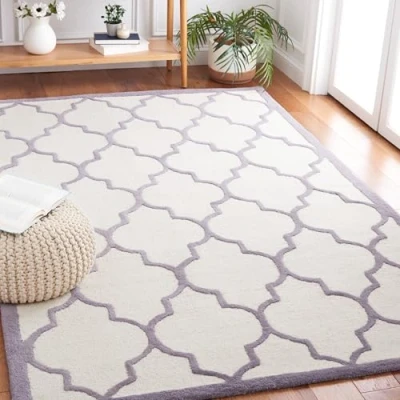 TRENDY STYLE: Trellis rug design from the Safavieh Cambridge Collection hand tufted in India beautifully enhances any room of the home, from the living room, dining room, bedroom, home office, or entryway. Available in many colors and sizes. HIGH QUALITY & DURABLE DESIGN: Woven of 100% Wool Pile this hand tufted area rug has a plush & comfortable 1.2 cm medium pile and is soft underfoot. STAIN RESISTANT & FAMILY-FRIENDLY: Beautifully hand tufted from artisans of the highest quality, soft and dense wool, this carpet is comfortable underfoot. Given the nature of the fibers, this rug is less susceptible to stains. EASY CARE & MAINTENANCE: Vacuum regularly and gently blot and clean stains immediately with a mild detergent or carpet cleaner, then rinse thoroughly and dry. Professional cleaning recommended for tough stains and dirt. THE BRAND: Safavieh has been a trusted brand and global leader in home & living for over 100 Years. Experts in making quality, durable, trendy designs, the brand mixes materials, colors and styles to create a collection of rugs, furniture and lights Construction Type: Hand Tufted; Materials 100% Wool Size: 152 X 243 cm; Colour: IVORY / SILVER Vacuum regularly to prevent dust and crumbs from settling into the roots of the fibres. Avoid direct and continuous exposure to sunlight. Use rug protectors under the legs of heavy furniture to avoid flattening piles. Do not pull loose ends; clip them with scissors to remove. Turn carpet occasionally to equalize wear. Remove spills immediately. Professional cleaning is recommended.