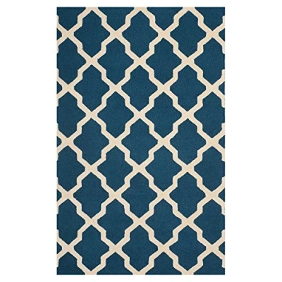 TRENDY STYLE: Trellis rug design from the Safavieh Cambridge Collection hand tufted in India beautifully enhances any room of the home, from the living room, dining room, bedroom, home office, or entryway. Available in many colors and sizes. HIGH QUALITY & DURABLE DESIGN: Woven of 100% Wool Pile this hand tufted area rug has a plush & comfortable 1.2 cm medium pile and is soft underfoot. STAIN RESISTANT & FAMILY-FRIENDLY: Beautifully hand tufted from artisans of the highest quality, soft and dense wool, this carpet is comfortable underfoot. Given the nature of the fibers, this rug is less susceptible to stains. EASY CARE & MAINTENANCE: Vacuum regularly and gently blot and clean stains immediately with a mild detergent or carpet cleaner, then rinse thoroughly and dry. Professional cleaning recommended for tough stains and dirt. THE BRAND: Safavieh has been a trusted brand and global leader in home & living for over 100 Years. Experts in making quality, durable, trendy designs, the brand mixes materials, colors and styles to create a collection of rugs, furniture and lights Construction Type: Hand Tufted; Materials 100% Wool Size: 91 X 152 cm; Colour: Navy Blue / Ivory Vacuum regularly to prevent dust and crumbs from settling into the roots of the fibres. Avoid direct and continuous exposure to sunlight. Use rug protectors under the legs of heavy furniture to avoid flattening piles. Do not pull loose ends; clip them with scissors to remove. Turn carpet occasionally to equalize wear. Remove spills immediately. Professional cleaning is recommended.