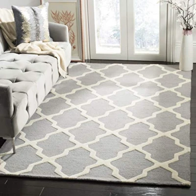 TRENDY STYLE: Geometric rug design from the Safavieh Cambridge Collection hand tufted in India beautifully enhances any room of the home, from the living room, dining room, bedroom, home office, or entryway. Available in many colors and sizes. HIGH QUALITY & DURABLE DESIGN: Woven of 100% Wool Pile this hand tufted area rug has a plush & comfortable 1.2 cm medium pile and is soft underfoot. STAIN RESISTANT & FAMILY-FRIENDLY: Beautifully hand tufted from artisans of the highest quality, soft and dense wool, this carpet is comfortable underfoot. Given the nature of the fibers, this rug is less susceptible to stains. EASY CARE & MAINTENANCE: Vacuum regularly and gently blot and clean stains immediately with a mild detergent or carpet cleaner, then rinse thoroughly and dry. Professional cleaning recommended for tough stains and dirt. THE BRAND: Safavieh has been a trusted brand and global leader in home & living for over 100 Years. Experts in making quality, durable, trendy designs, the brand mixes materials, colors and styles to create a collection of rugs, furniture and lights Construction Type: Hand Tufted; Materials 100% Wool Size: 152 X 243 cm; Colour: Silver / Ivory Vacuum regularly to prevent dust and crumbs from settling into the roots of the fibres. Avoid direct and continuous exposure to sunlight. Use rug protectors under the legs of heavy furniture to avoid flattening piles. Do not pull loose ends; clip them with scissors to remove. Turn carpet occasionally to equalize wear. Remove spills immediately. Professional cleaning is recommended.