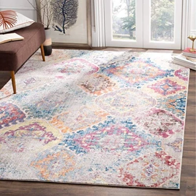 TRENDY STYLE: Trendy New Transitional rug design from the Safavieh Bristol Collection woven in Turkey beautifully enhances any room of the home, from the living room, dining room, bedroom, home office, or entryway. Available in many colors and sizes. HIGH QUALITY & DURABLE DESIGN: Woven of Polyester this machine made area rug has a plush & comfortable 0.8 cm low pile and is soft underfoot. STAIN RESISTANT & FAMILY-FRIENDLY: Expertly woven from enhanced soft synthetic durable fibers that are stain resistant and non-shedding, the rug doesn't trap dirt or debris making it pet-friendly and easy to clean. Perfect for high traffic areas. EASY CARE & MAINTENANCE: Vacuum regularly and gently blot and clean stains immediately with a mild detergent or carpet cleaner, then rinse thoroughly and dry. Professional cleaning recommended for tough stains and dirt. THE BRAND: Safavieh has been a trusted brand and global leader in home & living for over 100 Years. Experts in making quality, durable, trendy designs, the brand mixes materials, colors and styles to create a collection of rugs, furniture and lights