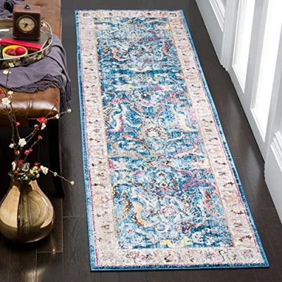 SAFAVIEH Trendy New Transitional Rug for Living Room, Dining Bedroom Bristol Collection, Short Pile, in Blue and Light Grey, 69 X 244 cm