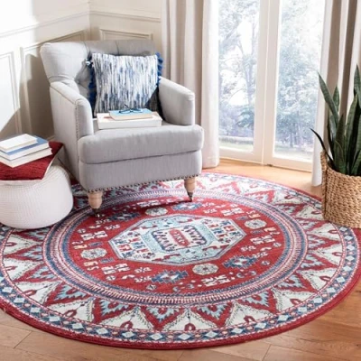 TRENDY STYLE: Tribal Inspired rug design from the Safavieh Kazak Collection woven in Turkey beautifully enhances any room of the home, from the living room, dining room, bedroom, home office, or entryway. Available in many colors and sizes. HIGH QUALITY & DURABLE DESIGN: Woven of Polypropylene this machine made area rug has a plush & comfortable 0.8 cm low pile and is soft underfoot. STAIN RESISTANT & FAMILY-FRIENDLY: Expertly woven from enhanced soft synthetic durable fibers that are stain resistant and non-shedding, the rug doesn't trap dirt or debris making it pet-friendly and easy to clean. Perfect for high traffic areas. EASY CARE & MAINTENANCE: Vacuum regularly and gently blot and clean stains immediately with a mild detergent or carpet cleaner, then rinse thoroughly and dry. Professional cleaning recommended for tough stains and dirt. THE BRAND: Safavieh has been a trusted brand and global leader in home & living for over 100 Years. Experts in making quality, durable, trendy designs, the brand mixes materials, colors and styles to create a collection of rugs, furniture and lights