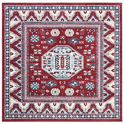TRENDY STYLE: Tribal Inspired rug design from the Safavieh Kazak Collection woven in Turkey beautifully enhances any room of the home, from the living room, dining room, bedroom, home office, or entryway. Available in many colors and sizes. HIGH QUALITY & DURABLE DESIGN: Woven of Polypropylene this machine made area rug has a plush & comfortable 0.8 cm low pile and is soft underfoot. STAIN RESISTANT & FAMILY-FRIENDLY: Expertly woven from enhanced soft synthetic durable fibers that are stain resistant and non-shedding, the rug doesn't trap dirt or debris making it pet-friendly and easy to clean. Perfect for high traffic areas. EASY CARE & MAINTENANCE: Vacuum regularly and gently blot and clean stains immediately with a mild detergent or carpet cleaner, then rinse thoroughly and dry. Professional cleaning recommended for tough stains and dirt. THE BRAND: Safavieh has been a trusted brand and global leader in home & living for over 100 Years. Experts in making quality, durable, trendy designs, the brand mixes materials, colors and styles to create a collection of rugs, furniture and lights