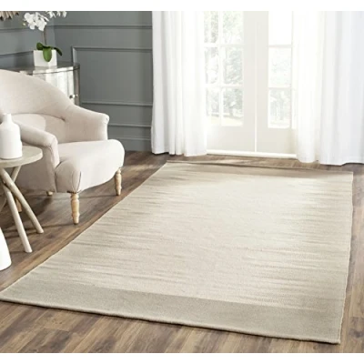 TRENDY STYLE: Tribal Inspired rug design from the Safavieh Kilim Collection flatweave in India beautifully enhances any room of the home, from the living room, dining room, bedroom, home office, or entryway. Available in many colors and sizes. HIGH QUALITY & DURABLE DESIGN: Woven of Wool this hand made area rug has a plush & comfortable 0.6 cm low pile and is soft underfoot. STAIN RESISTANT & FAMILY-FRIENDLY: Beautifully hand tufted from artisans of the highest quality, soft and dense wool, this carpet is comfortable underfoot. Given the nature of the fibers, this rug is less susceptible to stains. EASY CARE & MAINTENANCE: Vacuum regularly and gently blot and clean stains immediately with a mild detergent or carpet cleaner, then rinse thoroughly and dry. Professional cleaning recommended for tough stains and dirt. THE BRAND: Safavieh has been a trusted brand and global leader in home & living for over 100 Years. Experts in making quality, durable, trendy designs, the brand mixes materials, colors and styles to create a collection of rugs, furniture and lights Construction Type: Hand Knotted; Materials 100% Wool Size: 152 X 243 cm; Colour: Beige / Light Green Vacuum regularly to prevent dust and crumbs from settling into the roots of the fibres. Avoid direct and continuous exposure to sunlight. Use rug protectors under the legs of heavy furniture to avoid flattening piles. Do not pull loose ends; clip them with scissors to remove. Turn carpet occasionally to equalize wear. Remove spills immediately. Professional cleaning is recommended.