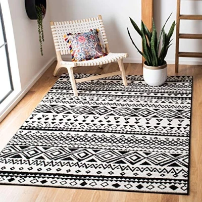 TRENDY STYLE: Tribal Inspired rug design from the Safavieh Mercer Collection woven in Turkey beautifully enhances any room of the home, from the living room, dining room, bedroom, home office, or entryway. Available in many colors and sizes. HIGH QUALITY & DURABLE DESIGN: Woven of Polypropylene this machine made area rug has a plush & comfortable 1 cm low pile and is soft underfoot. STAIN RESISTANT & FAMILY-FRIENDLY: Expertly woven from enhanced soft synthetic durable fibers that are stain resistant and non-shedding, the rug doesn't trap dirt or debris making it pet-friendly and easy to clean. Perfect for high traffic areas. EASY CARE & MAINTENANCE: Vacuum regularly and gently blot and clean stains immediately with a mild detergent or carpet cleaner, then rinse thoroughly and dry. Professional cleaning recommended for tough stains and dirt. THE BRAND: Safavieh has been a trusted brand and global leader in home & living for over 100 Years. Experts in making quality, durable, trendy designs, the brand mixes materials, colors and styles to create a collection of rugs, furniture and lights
