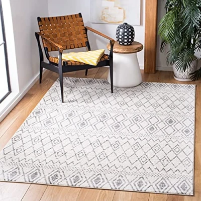 Safavieh Tulum Collection Bohemian Rug for Living Room, Dining Bedroom, Short Pile, Ivory and Grey, 165 x 231 cm