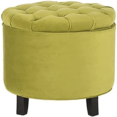 Safavieh Transitional Tufted Storage Ottoman. Perfect for the Living Room, Dining Room, Family Room, Den, Library or Study/Office. Color: Asparagus Green ; Product Dimensions: 52 X 52 X 49.78 cm Wood Content: Oak ; Upholstery Content: 100% Cotton Velvet Assembly Required: No ; Country of Origin: China To prevent overall soiling, frequent vacuuming or light brushing is recommended. Spot clean, using a mild water-free solvent or dry cleaning product. Only a professional cleaner should undertake a complete overall cleaning. The use of steam or water-based cleaners may cause excessive shrinking or staining. Dust regularly with a soft, dry cloth. Never use oiled or treated cloths on lacquered finishes. Some finishes can be wiped with a damp (not wet) cloth, followed at once by rubbing with a dry cloth to remove fingerprints and smudges. For persistent spots, gently clean with a soft cloth and a solution of water and mild soap, make sure to wipe dry.