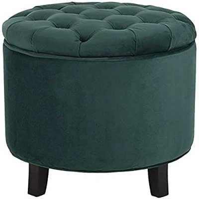Safavieh Transitional Tufted Storage Ottoman. Perfect for the Living Room, Dining Room, Family Room, Den, Library or Study/Office. Color: Emerald Green ; Product Dimensions: 52 X 52 X 49.78 cm Wood Content: Oak ; Upholstery Content: 100% Cotton Velvet Assembly Required: No ; Country of Origin: China To prevent overall soiling, frequent vacuuming or light brushing is recommended. Spot clean, using a mild water-free solvent or dry cleaning product. Only a professional cleaner should undertake a complete overall cleaning. The use of steam or water-based cleaners may cause excessive shrinking or staining. Dust regularly with a soft, dry cloth. Never use oiled or treated cloths on lacquered finishes. Some finishes can be wiped with a damp (not wet) cloth, followed at once by rubbing with a dry cloth to remove fingerprints and smudges. For persistent spots, gently clean with a soft cloth and a solution of water and mild soap, make sure to wipe dry.