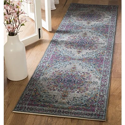 SAFAVIEH Vintage Inspired Rug for Living Room, Dining Bedroom Artisan Collection, Short Pile, in Grey and Fuchsia, 66 X 244 cm