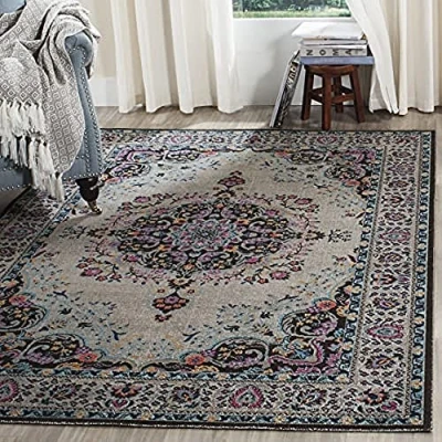 SAFAVIEH Vintage Inspired Rug for Living Room, Dining Bedroom Artisan Collection, Short Pile, in Light Grey and Black, 91 X 152 cm
