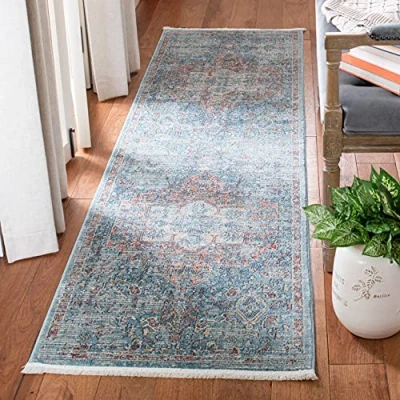 TRENDY STYLE: vintage inspired rug design Safavieh Victoria collection woven in Turkey enhances any room of the home, from living room, dining room, bedroom, study to entryway. Available in many colours and sizes High quality and durable design: woven from polypropylene, this machine-made rug has a plush and comfortable 1 cm low pile and is soft underfoot VERSATILE DECORATION OPTIONS: matches casual, bohemian, coastal, farmhouse, contemporary or transitional decor style Easy care and maintenance: stress-free cleaning includes regular vacuuming (without impact bar) and gently removing smaller stains with a mild detergent or carpet cleaner; professional cleaning is recommended for stubborn stains and dirt TRUSTED BRAND: SAFAVIEH has been a trusted brand and leader in home textiles for over 100 years; they use their specialty and expertise to develop the trendiest and highest quality designs and colors; start your carpet search with SAFAVIEH and discover over 100,000 products today