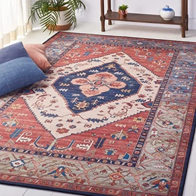SAFAVIEH Washable Rug Tucson Collection 3' x 5', Rust & Blue, Slip Resistant, Ideal for High Traffic Areas in Entryway, Living Room, Foyer, Bedroom (TSN153P 3)