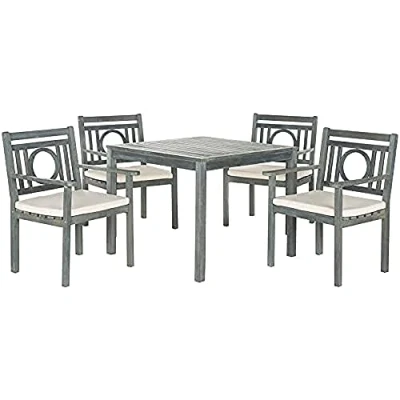 SAFAVIEH Wooden Outdoor Dining Set of 5, Patio Table and Chairs, in Ash Grey Beige