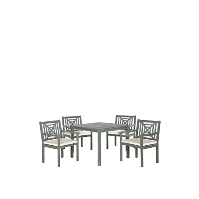 SAFAVIEH Wooden Outdoor Dining Set of 5, Patio Table and Chairs, in Ash Grey Beige