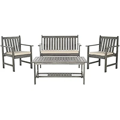 SAFAVIEH Wooden Outdoor Patio Set Cushioned of 4, in Grey Wash and Beige