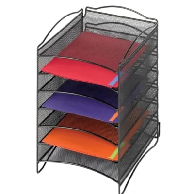 Six compartment literature organizer Horizontal pockets, 1-3/4"D for letter size file folders or papers Connector clips included Easily stack 2 high Sturdy steel mesh construction