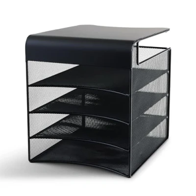 Safco Products Onyx Mesh 4 Tray Underdesk Space Saving Desktop Hanging Organizer, Durable Steel Construction, 20lb Capacity, Black Powder Coat Finish, 10.25" w x 12.375" d 12" h