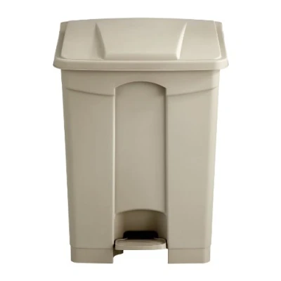 Safco Step On Indoor Plastic Trash Can for Home & Garage, Hands Free Disposal, 17 Gallon, Tan