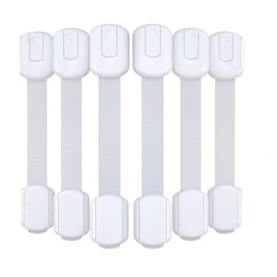 Safer Giggles Cupboard Lock Strap 6 Pack, Child Safety Cabinet & Drawer Locks, Adjustable Baby Proofing Straps for Doors, Cabinets, Refrigerator, Tool Free Installation