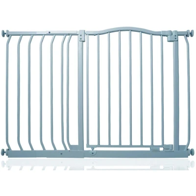 General description The Safetots Matt Curved Top Safety Gate is designed with the latest stair gate technology, providing a stylish and robust solution for parents. It is ideal for wider openings, ensuring safety without compromising on aesthetics. Technical specifications Width: 107cm - 116cm (can be extended up to 280cm with additional extensions) Height at the top of the curve: 75.6cm from the floor Installation Pressure fitted, requiring no screws into walls Easy installation guide included for quick setup Can only be installed in a straight line Usage Opens in either direction Features auto close technology to ensure the gate is secured Stay open technology allows the gate to remain open beyond ninety degrees for easy passage Quick check indicator alerts if the gate is securely locked or incorrectly installed