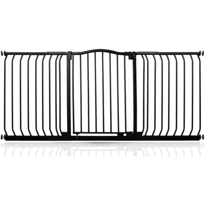 General description The Safetots Matt Curved Top Safety Gate is designed with the latest stair gate technology, providing a stylish and robust solution for parents. It is ideal for wider openings and features a pressure fit installation that requires no screws, allowing for quick and easy setup. Technical specifications Width: 161cm - 170cm (can be extended up to 280cm with additional extensions) Height at the top of the curve: 75.6cm from the floor Installation Pressure fitted, no need to screw into walls Can be installed in a few minutes with an easy installation guide Can only be installed in a straight line Usage Opens in either direction Features auto close technology to ensure the gate is secured Stay open technology allows the gate to remain open beyond ninety degrees for easy access Quick check indicator technology alerts if the gate is securely locked or incorrectly installed
