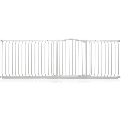 ManoManoGeneral description The Safetots Matt Curved Top Safety Gate is designed with the latest stair gate technology, making it an ideal solution for parents seeking a wider, robust, and stylish gate. This pressure-fit gate requires no screws for installation, allowing for a quick setup in just a few minutes. Technical specifications Width: 225cm - 234cm (can be extended up to 280cm with additional extensions) Height at the top of the curve: 75.6cm from the floor Installation Pressure fitted, no need to screw into walls Easy installation guide included Can only be installed in a straight line Usage Opens in either direction Features auto close technology to ensure the gate is secured Stay open technology allows the opening panel to remain open beyond ninety degrees Quick check indicator technology alerts if the gate is securely locked or incorrectly installed