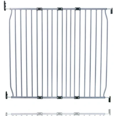 OVER 20 YEARS OF TRUST? Safetots, a family-owned business, has been dedicated to creating safe and secure spaces for children and pets for over two decades. Our commitment to safety and quality ensures that our products are rigorously tested to meet the highest current standards. With a legacy of trust and reliability, Safetots is a name you can depend on for your family's safety needs. RELIABLE SAFETY - Crafted from durable materials, our products ensure long-lasting protection. Smooth, rounded edges prevent injuries, while finishes are lick-safe and bite-proof for ultimate safety. Our sturdy baby gates feature robust, toddler-climb-proof, and finger-safe construction with a double-lock childproof opening system. Designed to exceed industry safety testing, all our baby gates pass the stringent Safety Barrier Standards EN1930:2011, providing unparalleled security. Safetots Eco Screw Fit Baby Gate, 110cm - 120cm COLOUR - Grey - Features a high-quality paint finish that is rigorously tested and certified to be free from harmful chemicals. This ensures a child-safe coating, providing peace of mind while maintaining a durable and attractive appearance. HEIGHT OF GATE - When installed - 77.5cm SCREW FIT (HARDWARE MOUNTED) - Provides a highly secure mounting solution for the safety gate. No trip hazard and wide walkthrough doorway make this gate especially suitable for use at the top of the stairs and ideal for any space for longer-term use and high-traffic areas. Ensures maximum stability and durability. ONE WAY GATE STOPPER - Gate opens only in your desired direction, a safety feature essential for the stairs and useful around the home. NO TRIP GATE - No bottom bar, ensuring no tripping hazards as you walk through the gate. SIMPLE CLOSE - Manual closing system for quick and easy locking. NO FRAME DESIGN - All door and no frame design ensures maximum passage and walkthrough space. EASILY EXTENDABLE- The gate can be effortlessly extended with simple one-piece gate extensions, accommodating various doorway widths. STAY OPEN ABILITY - The safety gate remains open until you decide to close it. NO HANDLE DESIGN - Seamless latch operation for opening and closing. EASE OF INSTALLATION & STYLISH DESIGN - Our gates offer quick, simple installation with detailed instructions for a secure fit. The intuitive one-hand opening mechanism for adults and easy-to-close, secure locking system enhance user-friendliness. Stylish and high-quality designs complement your home interior, making our products highly rated for reliability and ease of use. A comprehensive warranty is included, reflecting our commitment to customer satisfaction and product excellence.