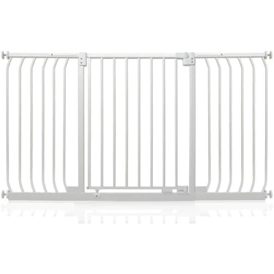OVER 20 YEARS OF TRUST? Safetots, a family-owned business, has been dedicated to creating safe and secure spaces for children and pets for over two decades. Our commitment to safety and quality ensures that our products are rigorously tested to meet the highest current standards. With a legacy of trust and reliability, Safetots is a name you can depend on for your family's safety needs. RELIABLE SAFETY - Crafted from durable materials, our products ensure long-lasting protection. Smooth, rounded edges prevent injuries, while finishes are lick-safe and bite-proof for ultimate safety. Our sturdy baby gates feature robust, toddler-climb-proof, and finger-safe construction with a double-lock childproof opening system. Designed to exceed industry safety testing, all our baby gates pass the stringent Safety Barrier Standards EN1930:2011, providing unparalleled security. Safetots Elite Pressure Safety Gate, 143cm - 152cm COLOUR - Matt White - Features a high-quality paint finish that is rigorously tested and certified to be free from harmful chemicals. This ensures a child-safe coating, providing peace of mind while maintaining a durable and attractive appearance. HEIGHT OF GATE - When installed - 72.5cm PRESSURE FIT TECHNOLOGY - Securely mounts the safety gate without the need for drilling, using a pressure-fit system that creates a strong and stable barrier by applying tension between the gate and the walls or door frames. Ideal for easy installation and removal. ALL OPTIONS GATE STOPPER - Customize your gate to open in one direction or both, providing safety and flexibility to suit your specific needs. OPEN GATE WARNING INDICATOR - Our visual indicator reassures you that the gate is correctly closed and secure, offering you peace of mind. AUTOMATIC CLOSING SYSTEM- The gate closes behind you for peace of mind and eliminates the worry of accidentally leaving the gate open. WIDE WALK-THROUGH - The spacious opening allows for easy passage, making it convenient for adults and older children. EASILY EXTENDABLE- The gate can be effortlessly extended with simple one-piece gate extensions, accommodating various doorway widths. STAY OPEN TECHNOLOGY- The gate can be fixed in the open position when pushed past 90 degrees, staying open until you decide to close it, offering convenience for busy households. ERGONOMIC HANDLE - Designed for comfortable and easy use, the handle ensures easy one-hand opening and closing. EASE OF INSTALLATION & STYLISH DESIGN - Our gates offer quick, simple installation with detailed instructions for a secure fit. The intuitive one-hand opening mechanism for adults and easy-to-close, secure locking system enhance user-friendliness. Stylish and high-quality designs complement your home interior, making our products highly rated for reliability and ease of use. A comprehensive warranty is included, reflecting our commitment to customer satisfaction and product excellence.